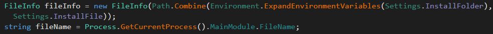 Once the sample has completed deploying its anti-analysis techniques it will then start to install the RAT on the host and establish more persistence on the host. First, the sample will check if Settings.Install is set to true, if it is it will then call the function NormalStartup.Install().