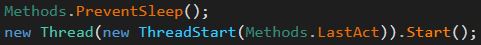 <figure><img src="https://3892796155-files.gitbook.io/~/files/v0/b/gitbook-x-prod.appspot.com/o/spaces%2FZt3ly4wOcBID8vwUbybj%2Fuploads%2FM5fwnh5vJLzz8wCALn5E%2FThreadCreation.JPG?alt=media&#x26;token=f958b97b-18f7-4f87-8f8e-d22d0a51a828" alt=""><figcaption><p>Thread being started with function LastAct</p></figcaption></figure>