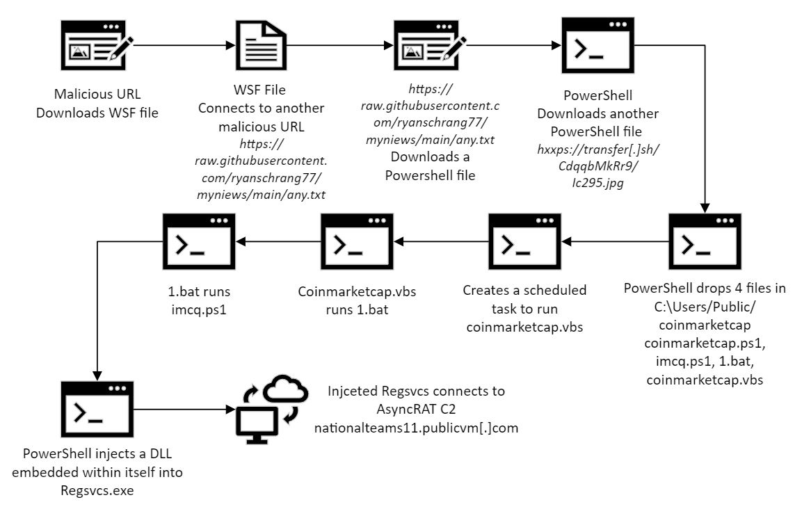 <figure><img src="https://3892796155-files.gitbook.io/~/files/v0/b/gitbook-x-prod.appspot.com/o/spaces%2FZt3ly4wOcBID8vwUbybj%2Fuploads%2Fid9Rcu0GYSrK4nLa2GWz%2FAsyncRat%20Infection%20Chain.jpeg?alt=media&#x26;token=641e38bf-4f10-4359-9640-8879dd0f01e2" alt=""><figcaption><p>The infection chain utilized by this sample</p></figcaption></figure>